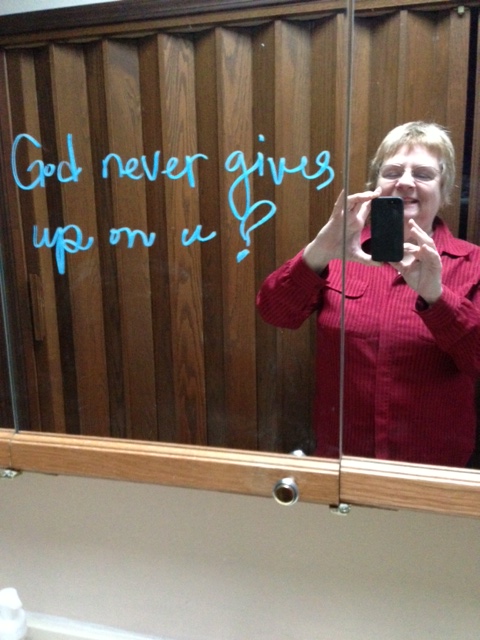 - I also picked up some mirror chalk (thanks for the idea, Tim & Talor.) This week Don and I started leaving each other encouraging notes on our mirrors. You can see in the picture above his note to me this morning. Honoring.